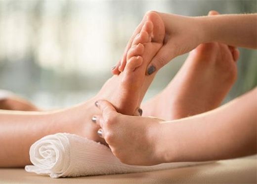 | Foot massage with lotion. |